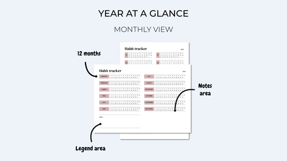 You wish to track and/or plan certain yearly activities, these planners and habit trackers are made for you!