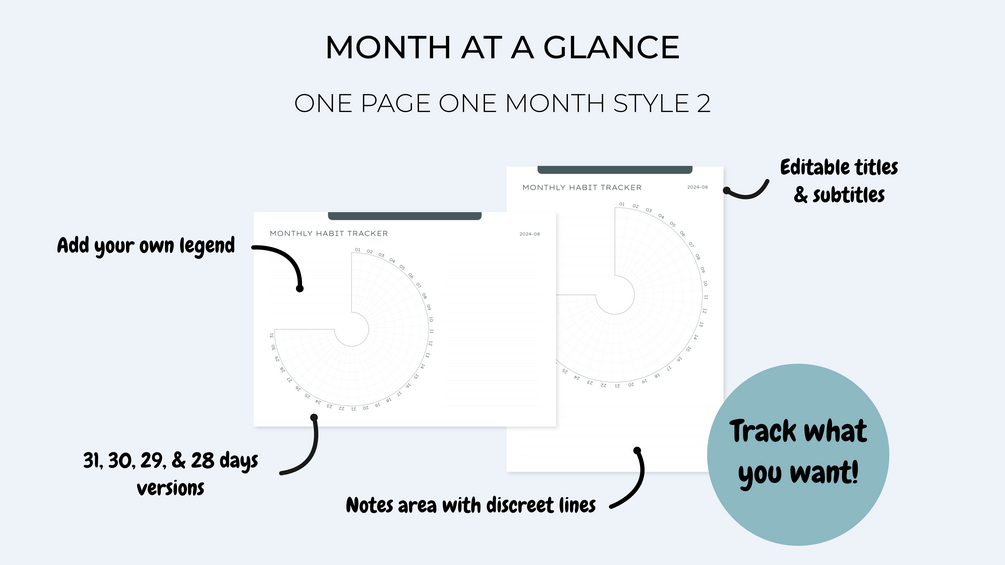 Track your monthly habits, simply, with these minimalist circular digital and printable habit trackers.
