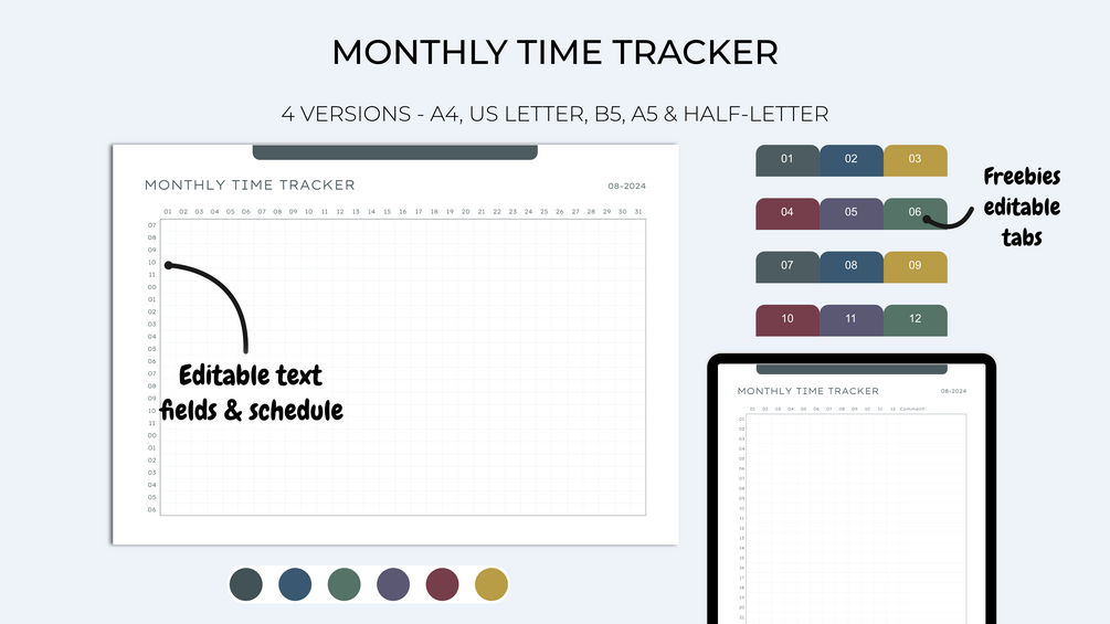 Track your activities & your time organization with these editable, printable & digital monthly time trackers.