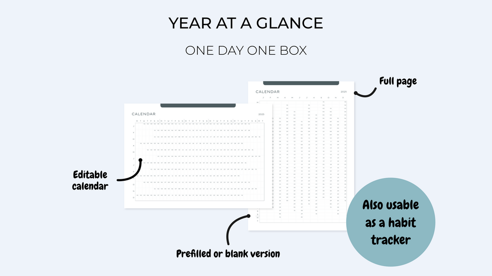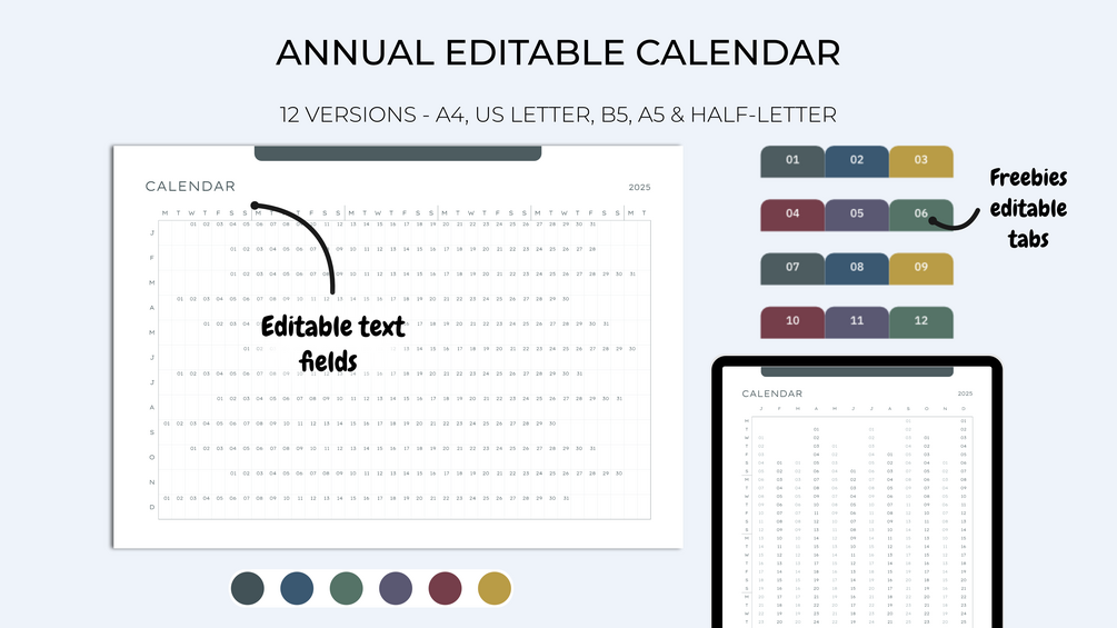 Printable & digital annual calendar | Minimalist style | Editable calendar | 2024 Calendar | 2025 Calendar | Minimalist style | Goodnotes, Notability, Xodo template