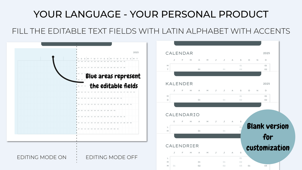 With prefilled versions for 2024 & 2025, as well as with the blank version which will allow you to organize your calendars as you wish (and for many years), you'll be able to have a complete view of your year at a glance.