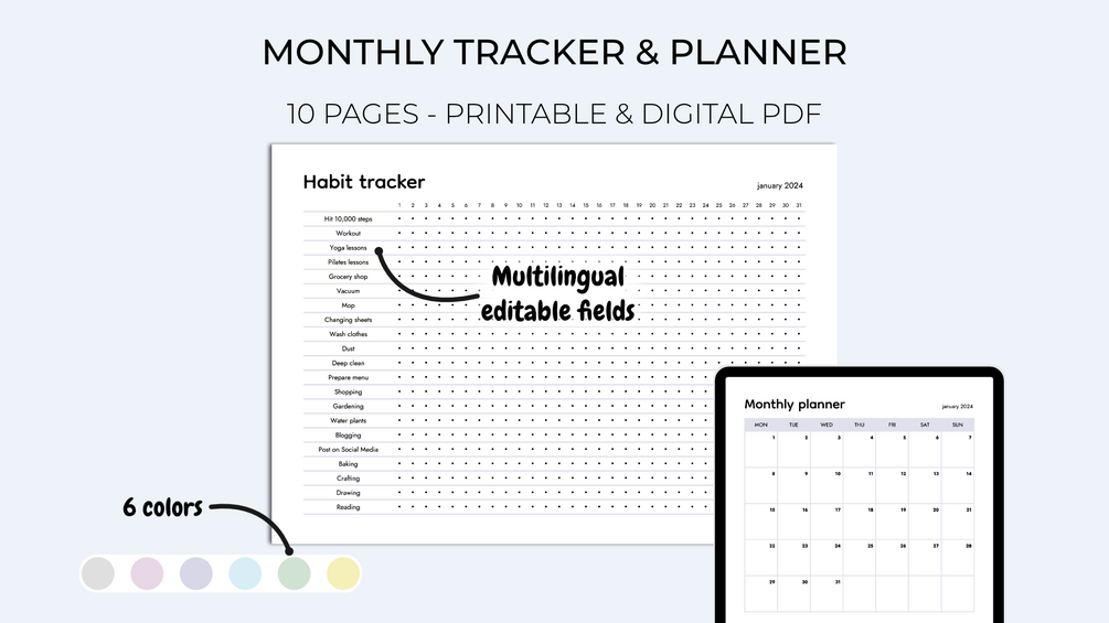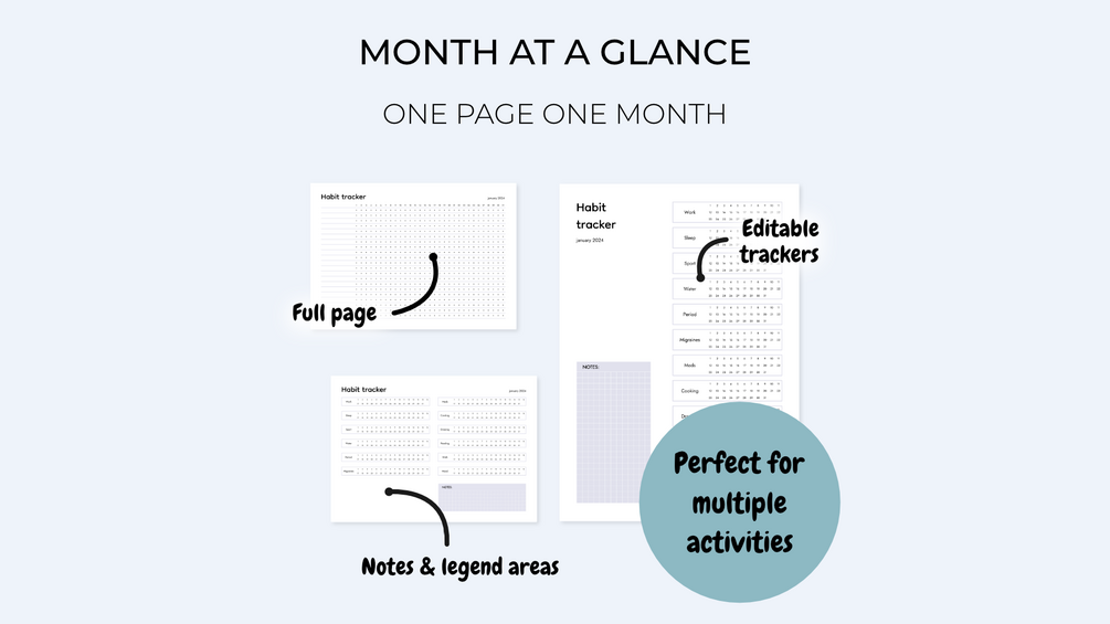 You wish to track and/or plan certain monthly activities,these planners and habit trackers are made for you!