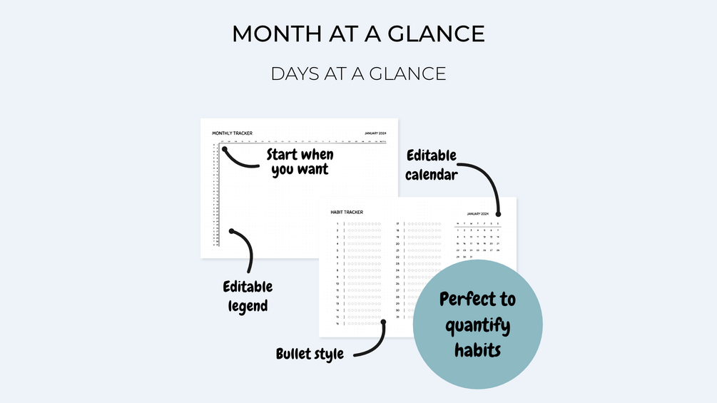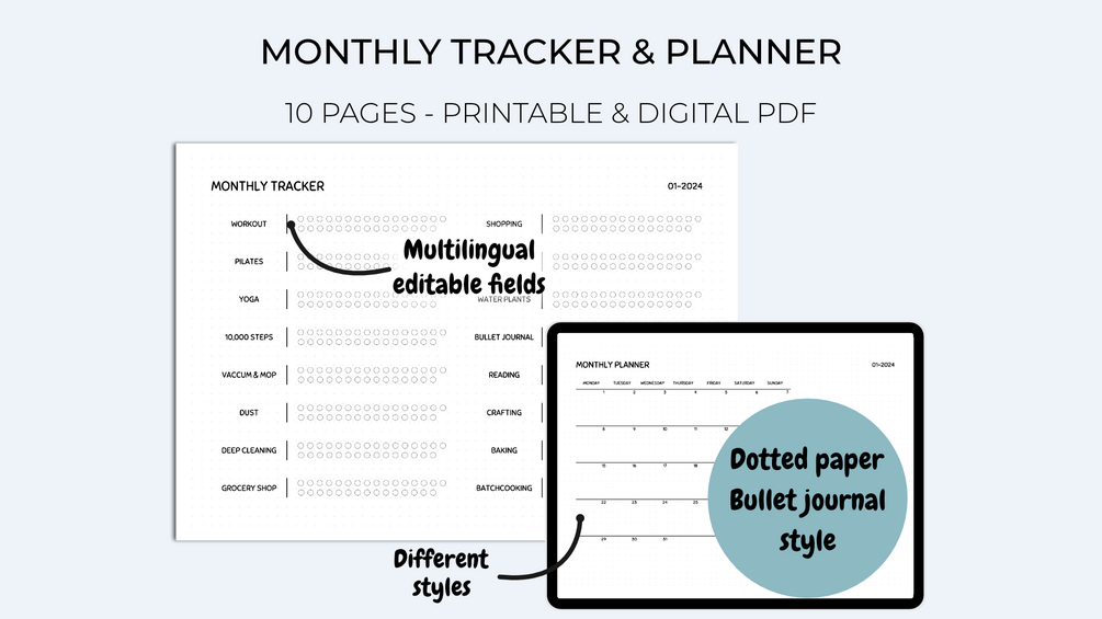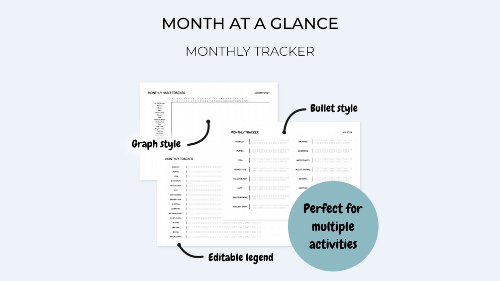 You wish to track and/or plan certain monthly activities,these planners and habit trackers are made for you!