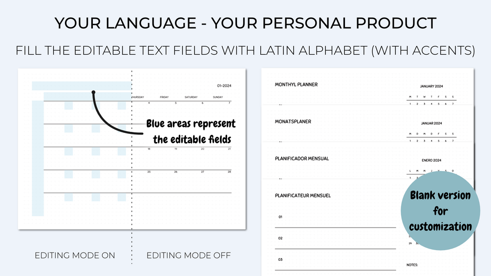 After your purchase, you can download the documents on your tablet or computer and modify them directly with a PDF editor or print the desired pages, bind them, or laminate them, to use them at your convenience.