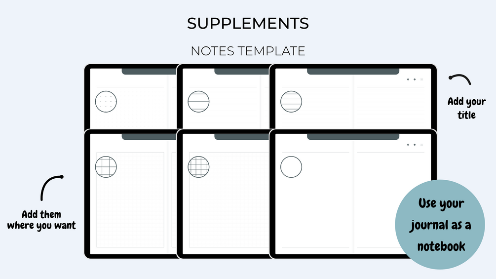 Capture your thoughts, goals and reflections with this minimalist digital daily journal compatible with PDF notes taking apps such as Goodnotes, Notability...