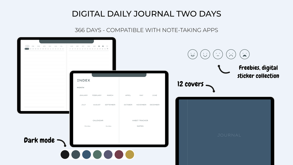 With its 7 colors (including a dark mode) and its collection of stickers, you can personalize your pages to obtain a journal that reflects your image, organize your days or even track your habits.