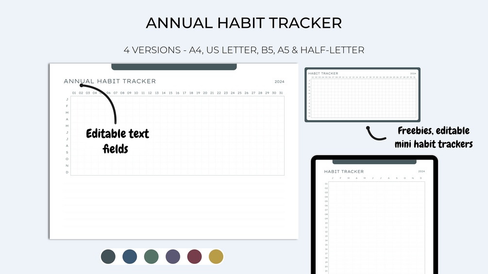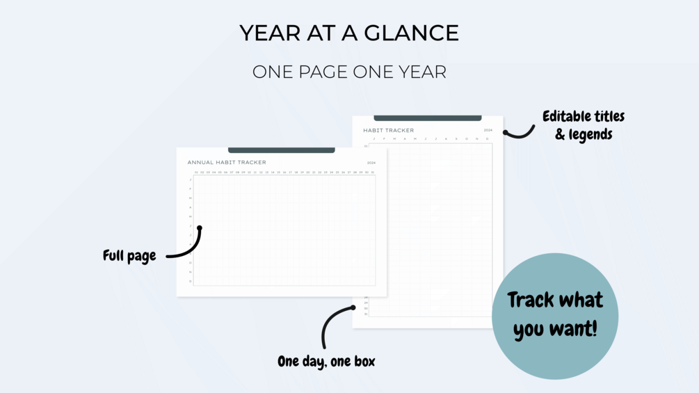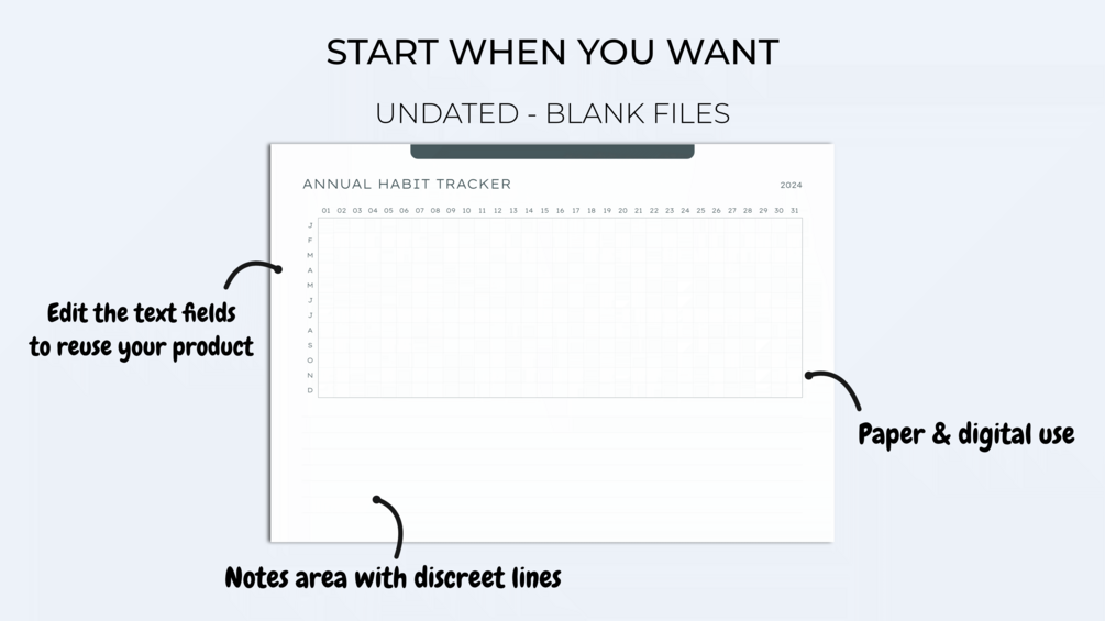 Printable & digital annual habit tracker | Editable yearly habit tracker | Minimalist style | Goodnotes, Notability, Xodo template