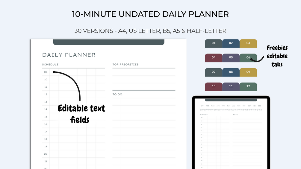 Printable & digital 10-minute daily planner portrait | Daily schedule | Compatible with note taking apps : Goodnotes, Notability, Freenotes, Notes+...