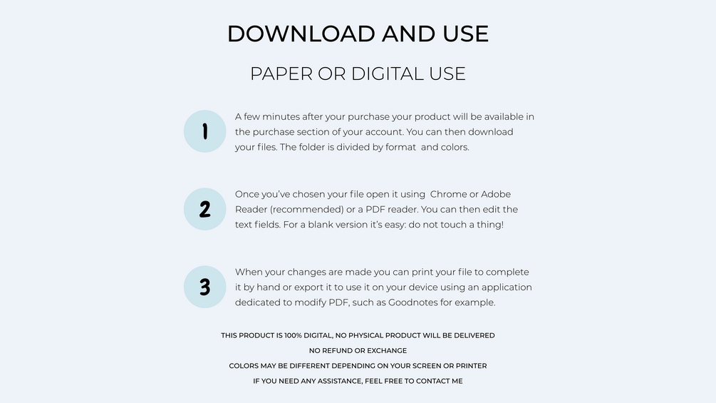 - As a reminder, this is a 100% digital document, you will not receive a physical product for this order.