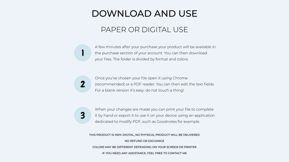 - As a reminder, this is a 100% digital document, you will not receive a physical product for this order.