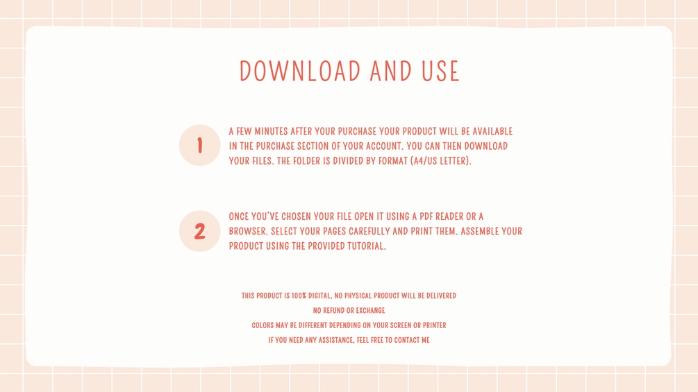 - As a reminder, this is a 100% digital document, so you must print your product yourself. You will not receive a physical product for this order.