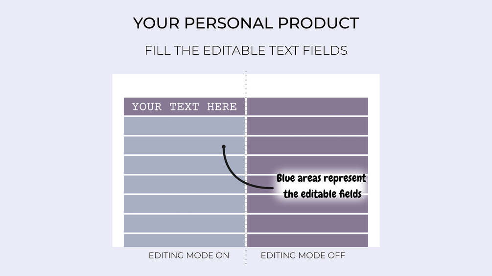 The edit option gives you the possibility to customize your product and use it to its full potential by adding your own title as well as some legends (it is recommended to open your PDF in Google Chrome or Adobe Reader to edit your product).