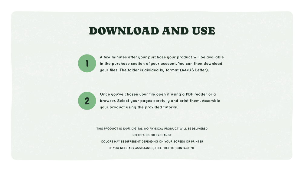 - As a reminder, this is a 100% digital document, so you must print your product yourself. You will not receive a physical product for this order.