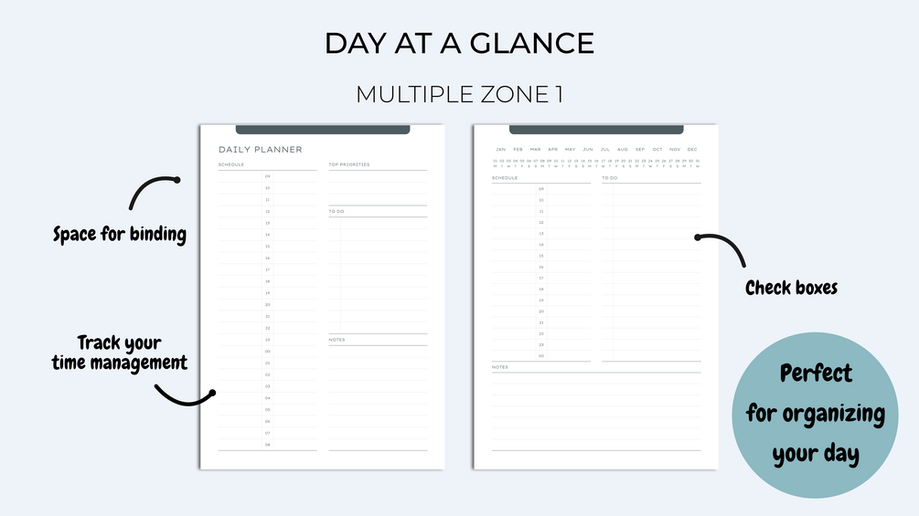Printable & digital daily planner portrait with dual schedule | Daily schedule | Compatible with note taking apps : Goodnotes, Notability, Freenotes, Notes+...
