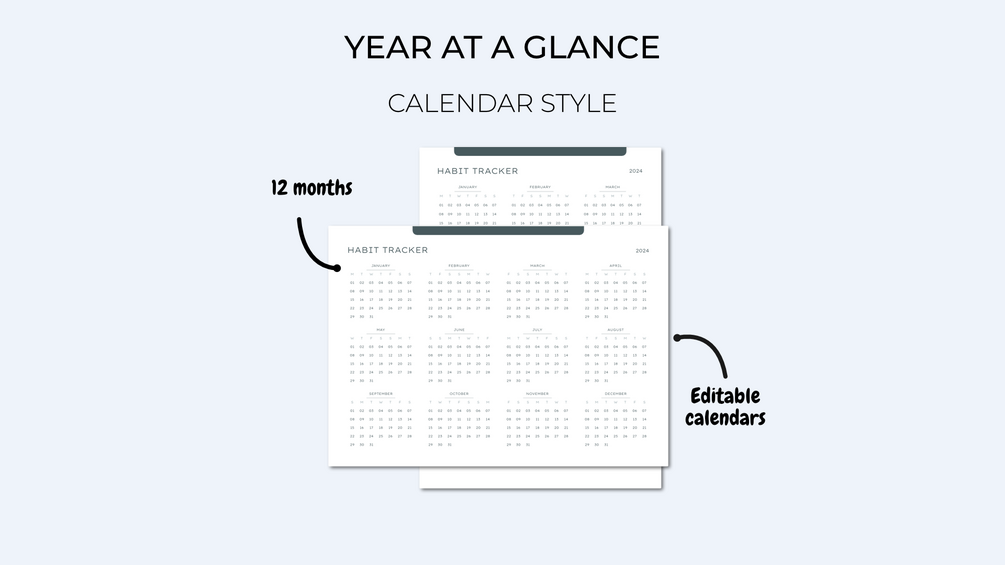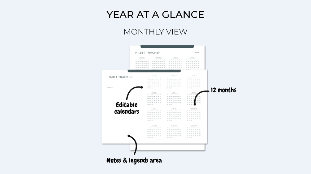 Yearly Habit trackers Minimalist | Habit trackers journal | Printable & editable