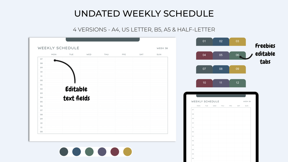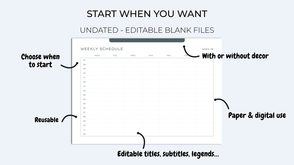 Organize yourself through the year with these editable, printable & digital weekly schedules.