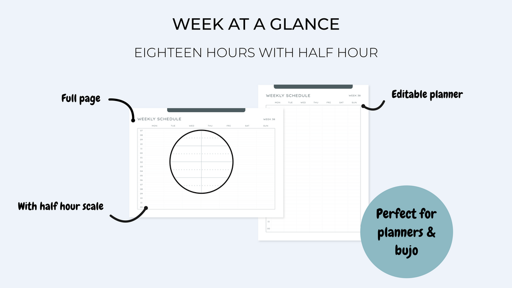 Thanks to the the full pages schedules you'll get a complete view of your week at a glance, and the possibility to fill it as you want.