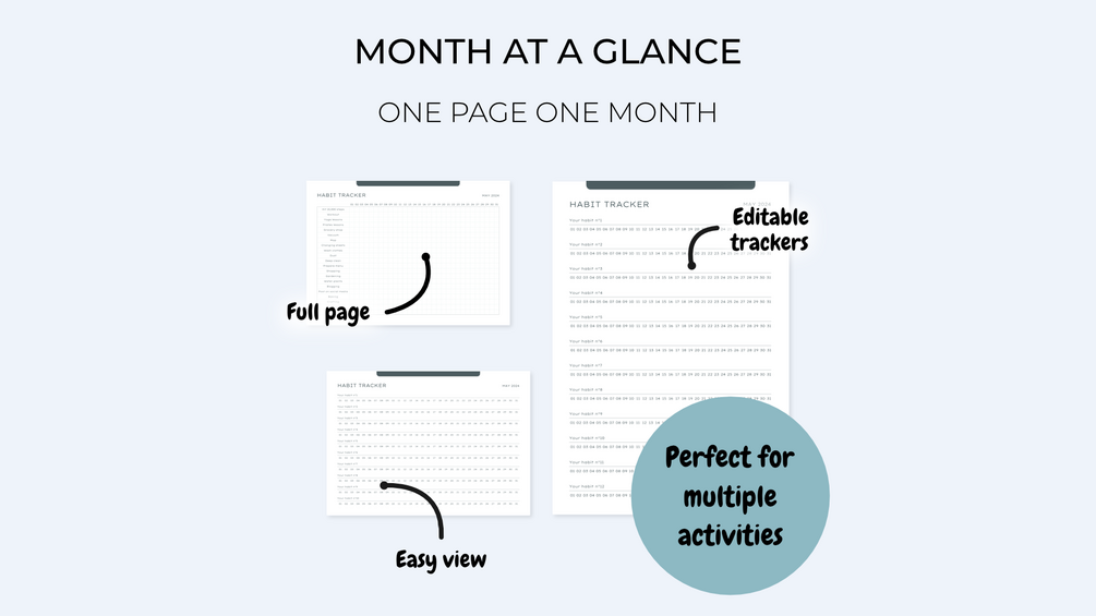 Monthly Habit trackers Minimalist | Habit trackers journal | Printable & editable